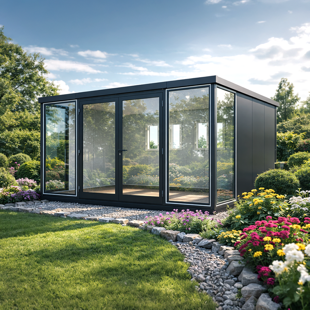 A sleek, contemporary glass unit that adapts effortlessly to your lifestyle — perfect for use at home or as a refined space for your business.
