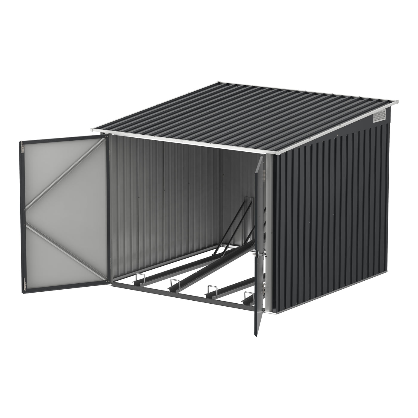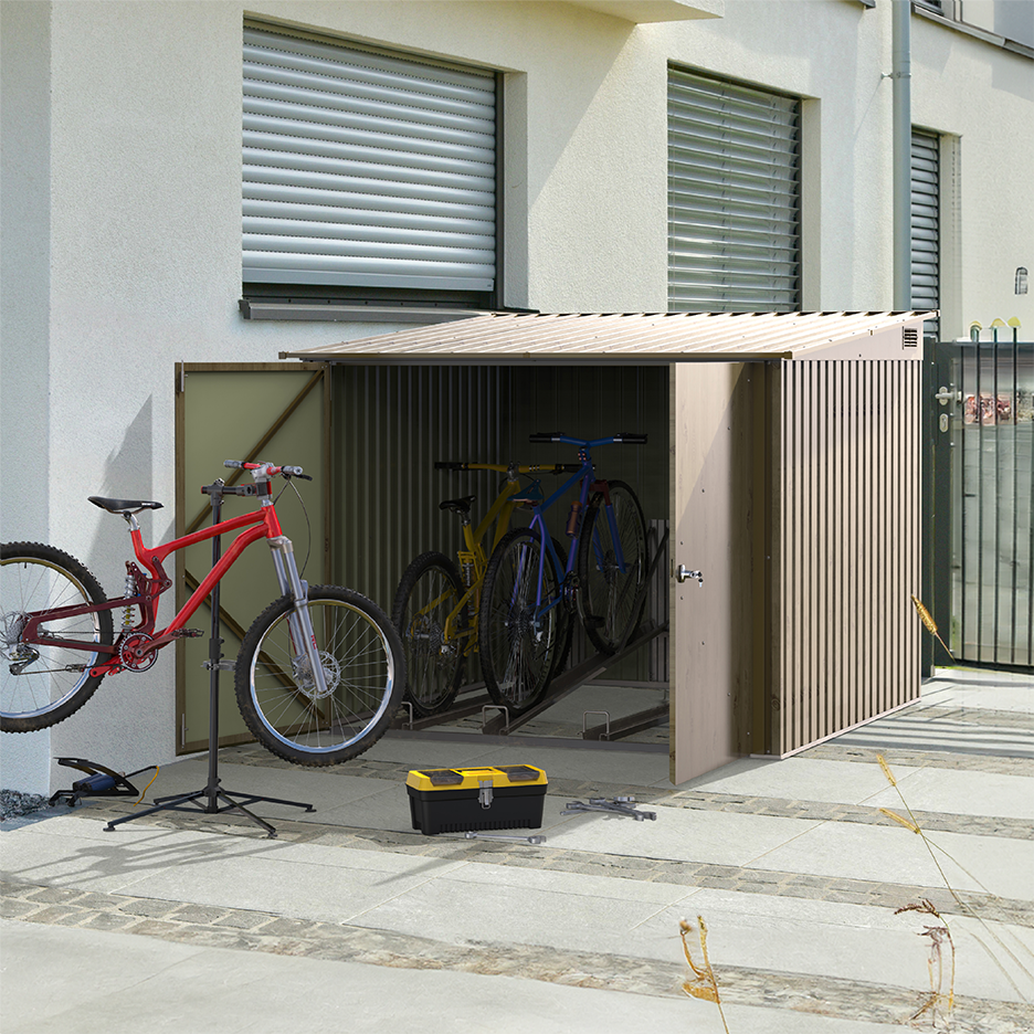 قم بتحقيق أقصى استفادة من مساحة معيشتك واحمي دراجاتك من ظروف الطقس القاسية مع مستودع تخزين الدراجات الفولاذي لدراجتين. تصميمه الأنيق يعزز أي مساحة خارجية، مع توفير مكان آمن وآمن لدراجاتك. استمتع بالراحة المضافة مع سهولة الوصول إلى دراجاتك عندما تكون جاهزًا للركوب. استثمر في مستودع تخزين الدراجات الفولاذي واجعل تجربة ركوب الدراجات الخاصة بك تصل إلى مستوى جديد.
