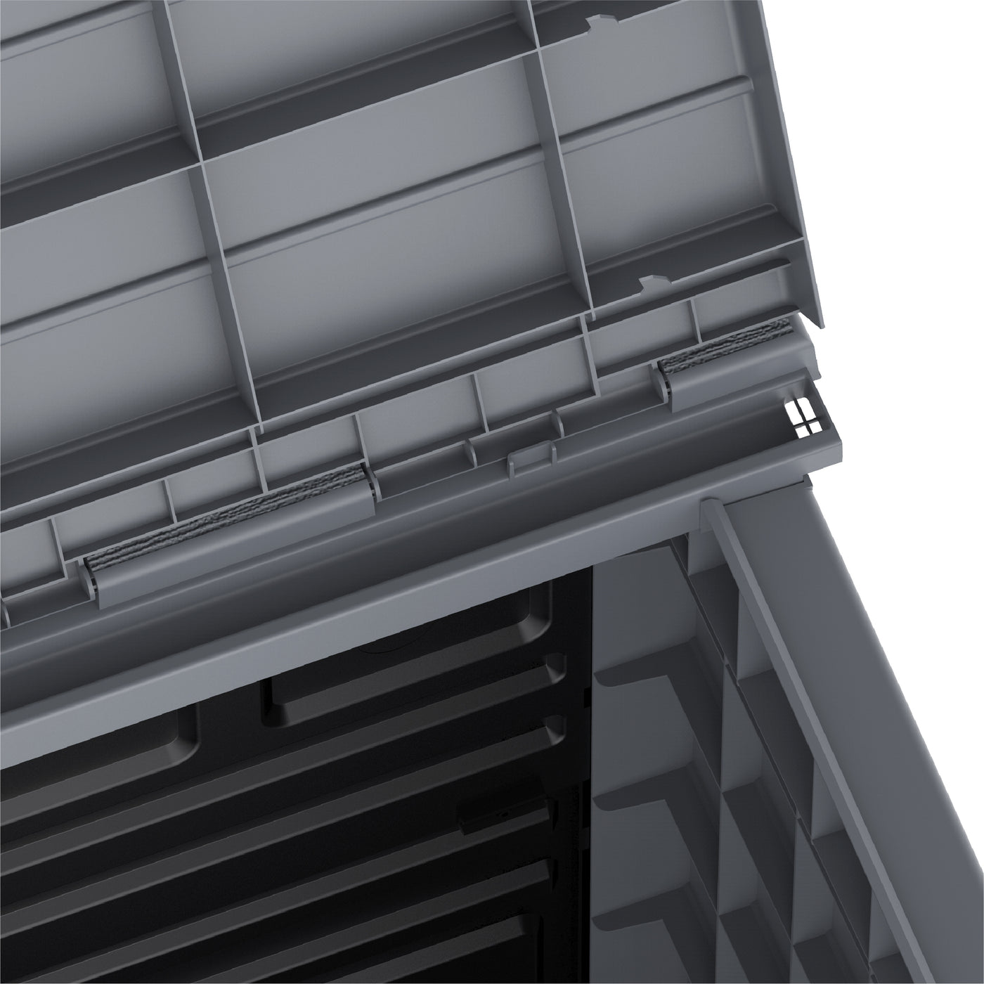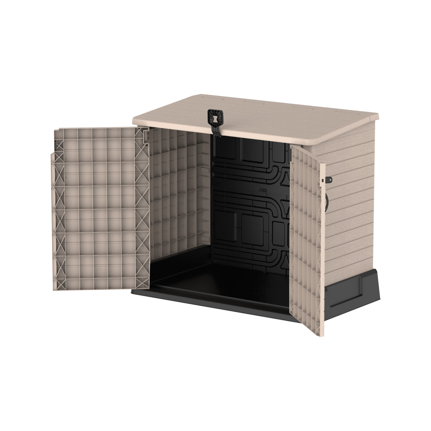 أرضية منخفضة : مع حافة أرضية منخفضة مصممة لهذا الغرض ، من السهل تحريك صناديق القمامة أو العشب أو إعادة التدوير داخل وخارج الصندوق دون الحاجة إلى الرفع أو المخاطرة بالانقلاب. احمِ نفاياتك من المخلوقات الغريبة بين أيام القمامة: يضمن هذا التصميم القوي أنك لن تستيقظ أبدًا على علب متناثرة في الحديقة وأكياس قمامة ممزقة مرة أخرى.