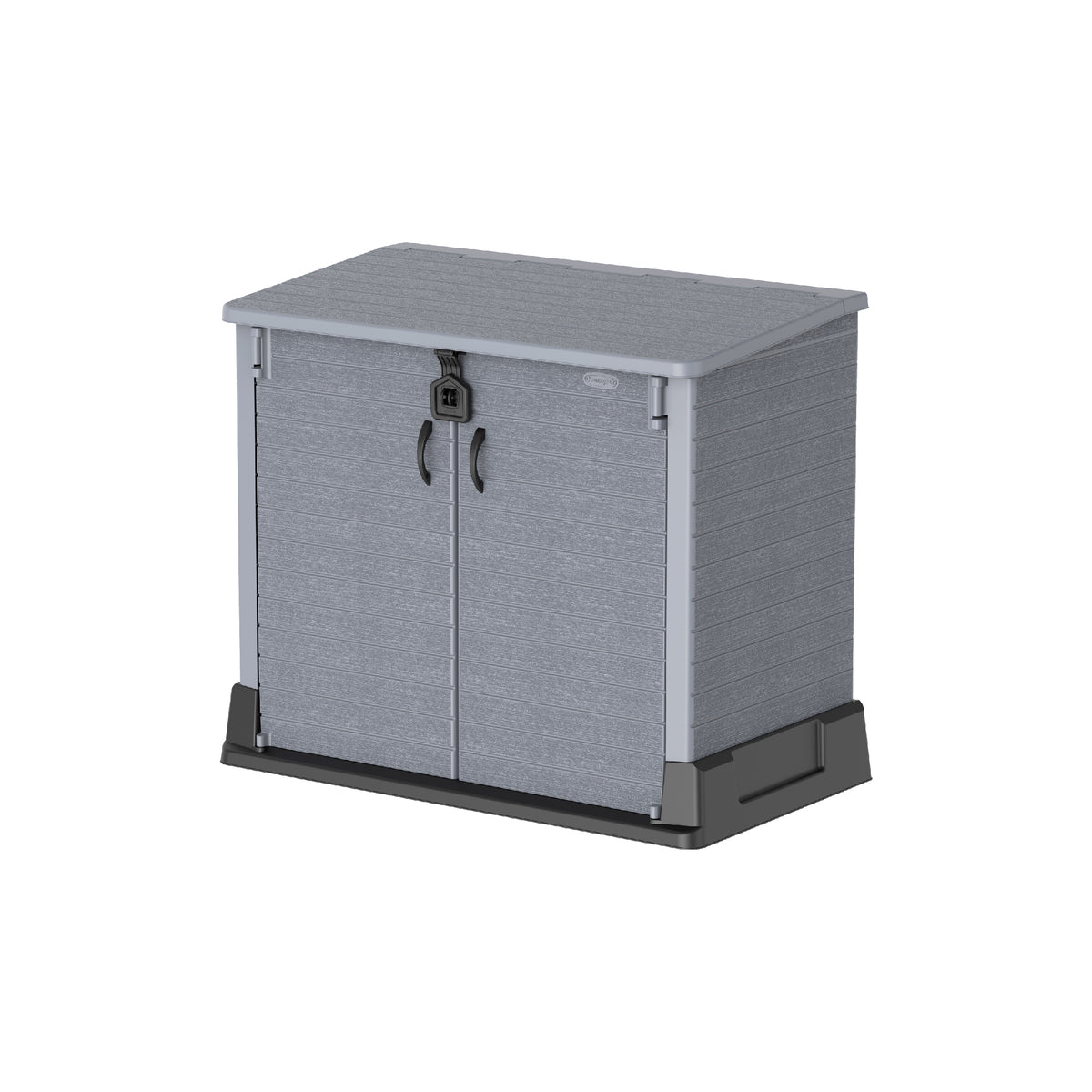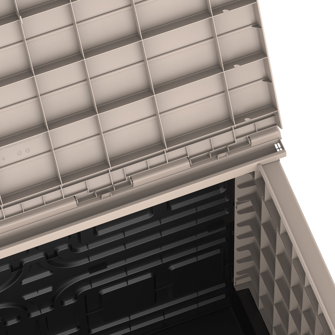 مساحة تخزين كبيرة : مع حجم داخلي يبلغ 850 لترًا ، هذا ليس صندوق تخزين سطح مضغوط متوسط. يوفر الحد الأقصى من مساحة التخزين المفيدة في أقل مساحة ممكنة ، مما يجعلها مثالية للشرفات والباحات والطوابق الأصغر أو التي يصعب التنقل فيها. بوزن 18 كيلوغرامًا ، من السهل أيضًا التعامل معها ، لكنها لن تسقط عندما تشتد الرياح.