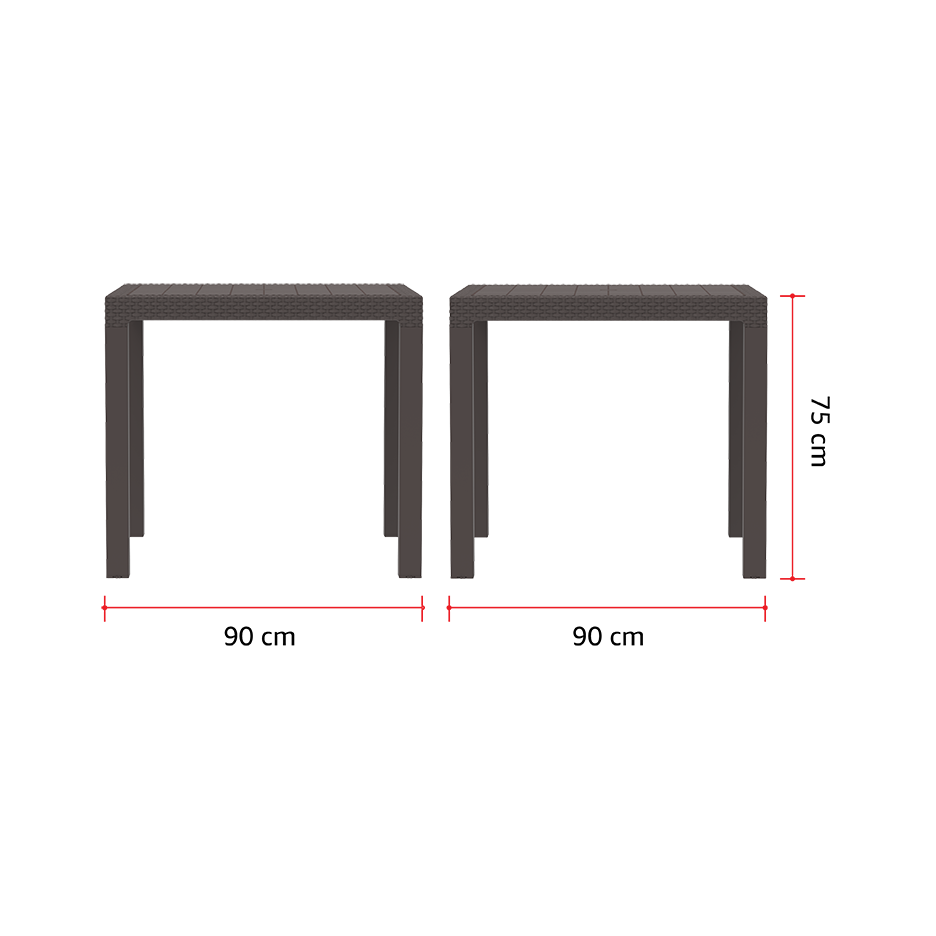 استمتع بوجبة غداء سريعة أو وجبة فطور متأخرة مع الأصدقاء، أو استرخِ مع مشروب بعد العمل، أو قم بإعداد لعبة أسبوعية - الطاولة الرائعة هي الأساس لجميع مناسباتك في الهواء الطلق. تصميم الروطان القوي والأنيق يبلغ طوله 90 سم وعرضه 90 سم وارتفاعه 75 سم: بحجم يكفي لاستيعاب 4 أشخاص بشكل مريح وفي الوقت نفسه يتناسب مع معظم الشُرفات والفناءات. فهو يحوّل على الفور المساحات الخارجية بالكامل أو المغطاة إلى مكان مرحب للاستمتاع بالشركة وجو الطبيعة في نفس الوقت.