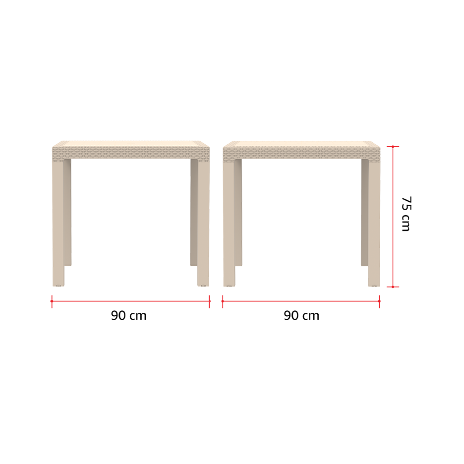 • الأبعاد: الطول 90 سم × العرض 90 سم × الارتفاع 75 سم