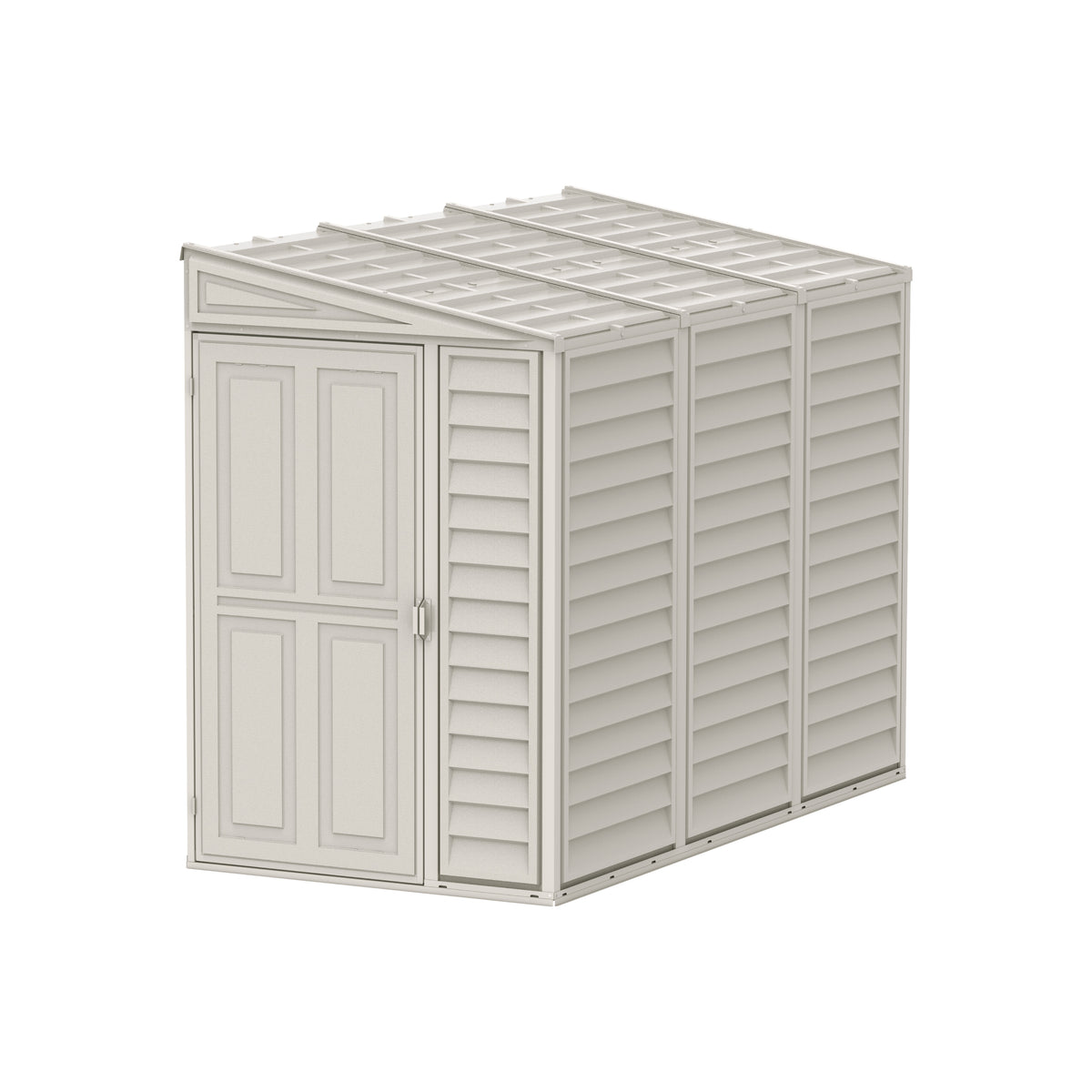 غرفة التخزين سايدمايت 4*8 يعد حل تخزين خارجي, سهل التركيب. يمكنك استعماله في جميع زوايا المنزل. الشكل الجزّاب لغرفة التخزين سوف يعطي شكلا جميلا لباحتك و حديقتك, و في نفس الوقت سيساعدك في تنظيم اغراضك. مصنوعة من مادة الفينيل المقاومة لجميع التقلبات المناخية (مطر, رياح, حرارة عالية, الخ.). غرفة التخزين لا تستوجب الصيانة. لن تحتاج التدهين, و لونها لن يصدأ. في نفس الوقت هي مقاومة للنار. تم تعزيز أعمدة الحائط بهيكل معدني صلب, مما يجعل الغرفة قوية المنشأ لتحمل رفوف التخزين و ادوات الحديقة. الاساس مصنوع من المعدن القاسي كي تسهل عملية التثبيت.