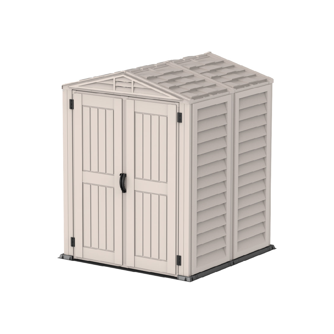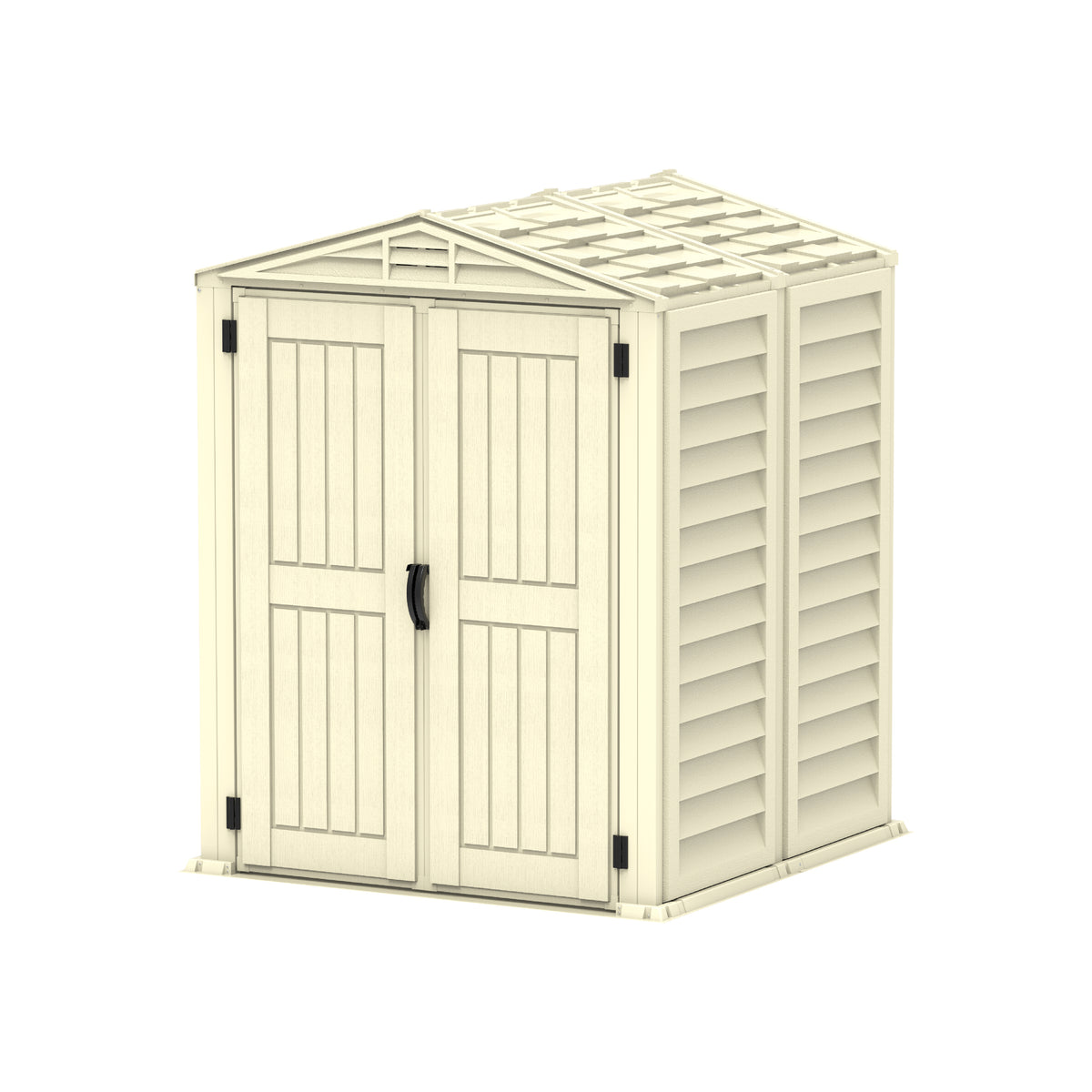 غرفة تخزين ياردمايت 5*5 هي الحجم الامثل لمعظم الحدائق و باحات البيوت. فهي مصنوعة من مادة الفينيل القاسية و ايضا معززة بمادة الفولاذ. الاعمدة مدعمة بالفولاذ لتسهيل تثبيت الرفوف او معدات الحديقة. يتميز بارتفاع الجدار الداخلي لغرفة التخزين. غرفة التخزين هذه مزودة ببابين لتسهيل عملية نقل المعدات و الامتعة من و الى الغرفة. غرف تخزين اليارمايت ايضا متوفرة بحجم اكبر 5*8