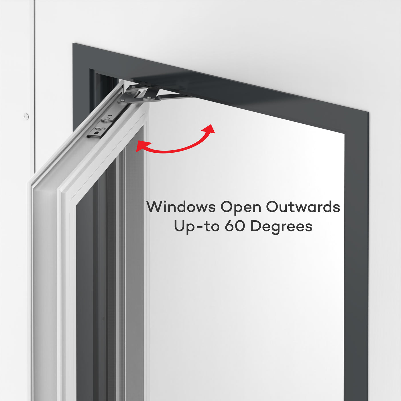 النوافذ تفتح إلى الخارج بزاوية تصل إلى 60 درجة