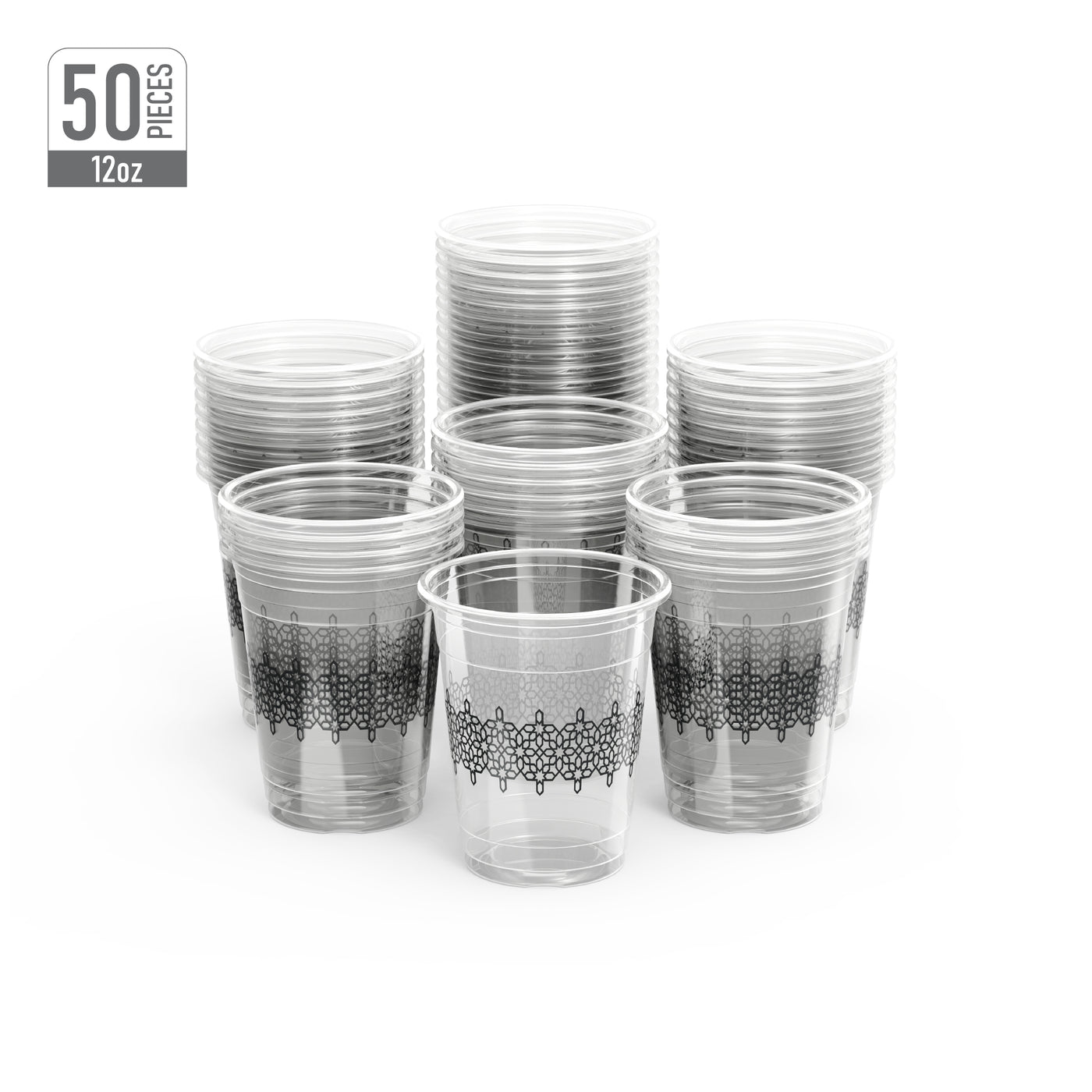 أكواب عصير بلاستيكية شفافة مع طباعة نمط عرقي 12 أونصة. - 20 قطعة.