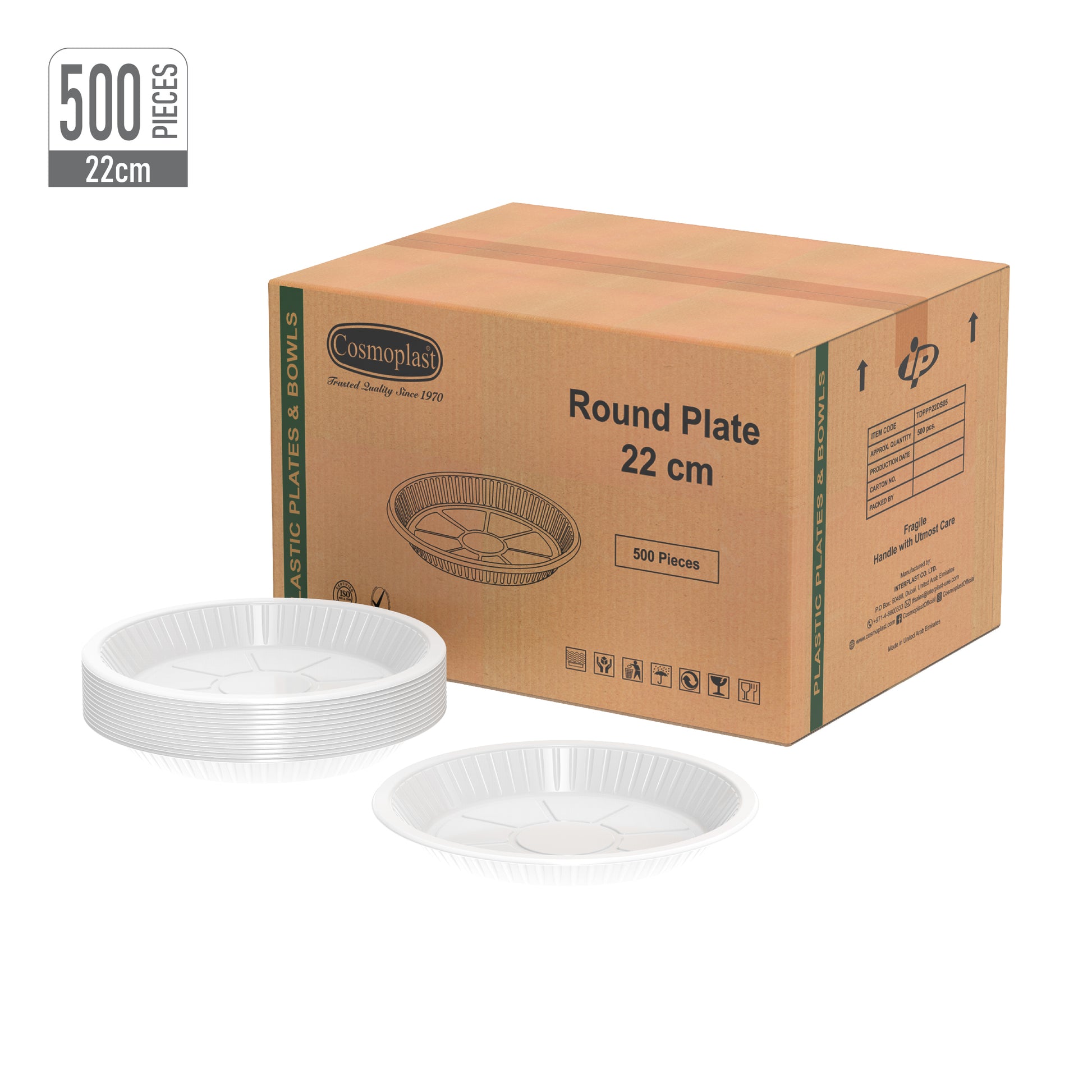 أطباق بلاستيك دائرية 1 حجيرة 22 سم 500 قطعة