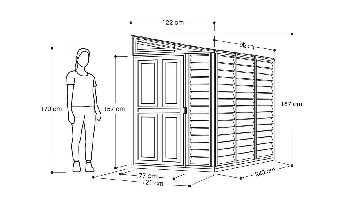 In order to install the shed, please ensure that you have minimum 30 cm of extra space from all sides, and 80 cm in front of the door.