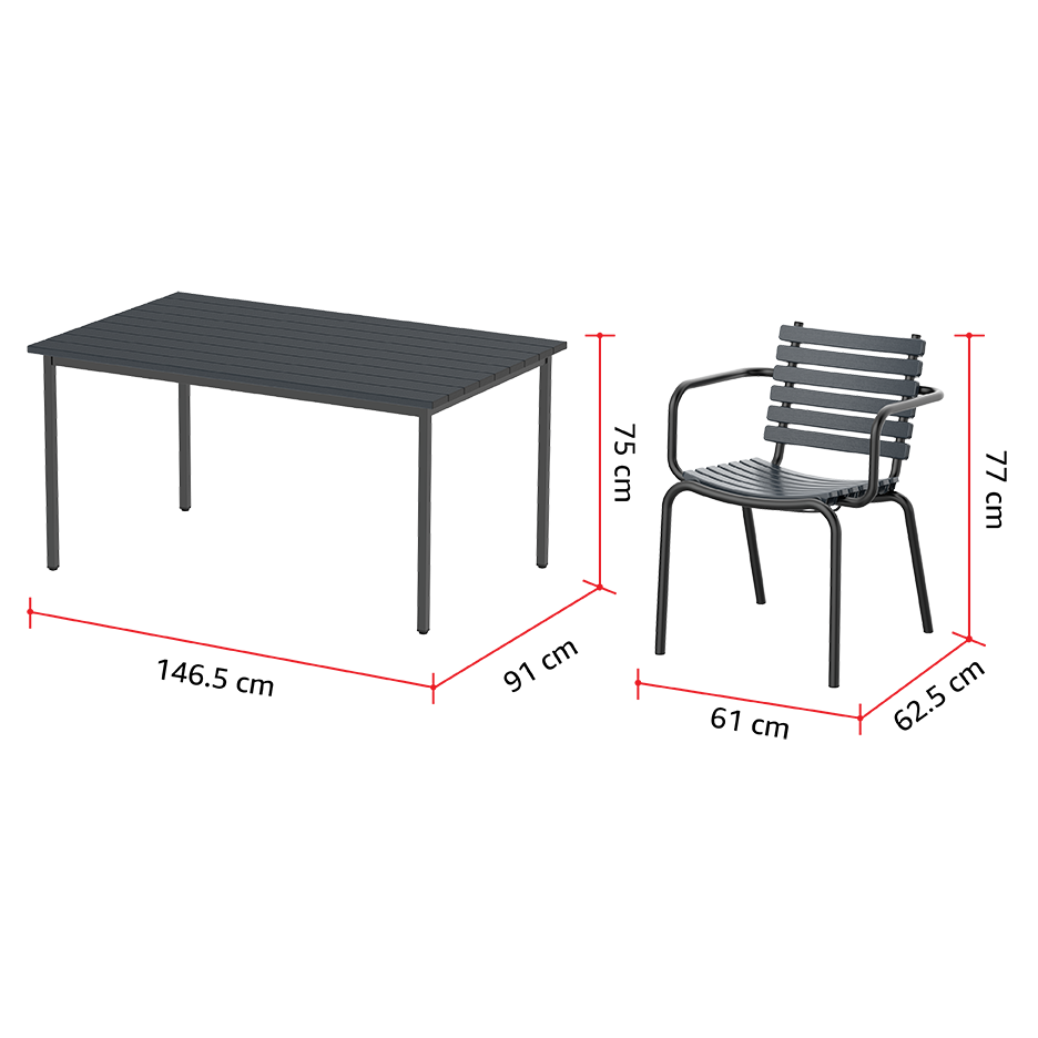 Gather your loved ones and elevate your outdoor dining experience with the Smart Wood Premium Outdoor Dining Set. This set combines durability with modern design, making it a versatile and stylish addition to any outdoor space. The weather and water-resistant construction ensures that you'll be able to enjoy your meals al fresco year-round, while the replaceable plastic panels on the chairs and solid WPC composite panels on the table make cleaning a breeze. With the ability to comfortably seat six people, this dining set is perfect for everything from casual weeknight dinners to special occasions and events. Don't settle for boring outdoor furniture - upgrade your space with the Smart Wood Premium Outdoor Dining Set.